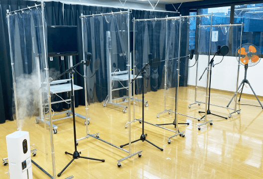 プロダクション・エース演技研究所では、3密(密閉・密集・密接)回避やフィジカルディスタンス(2m程度の距離間隔)に留意し、出来る限り安全にレッスンを受講できるような環境づくりを行っています。